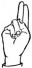 На ћирилици написано БОГДАН ТАДИН састоји се из 11 слова [?]. Исписано ћириличном једноручном азбуком за глувонеме: